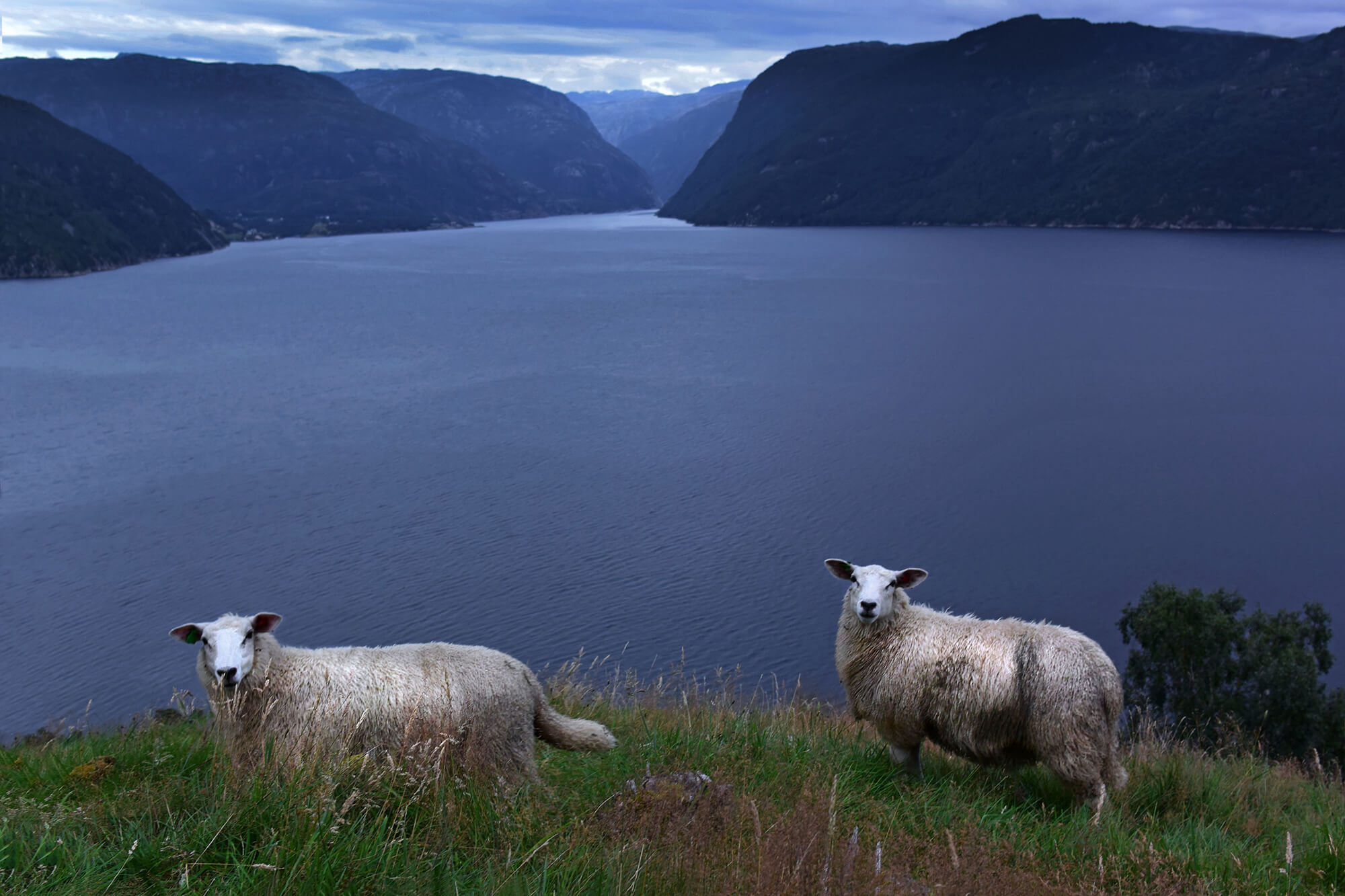 • Egyik a több, mint ezer fjordból szabadon kóricáló birkákkal.