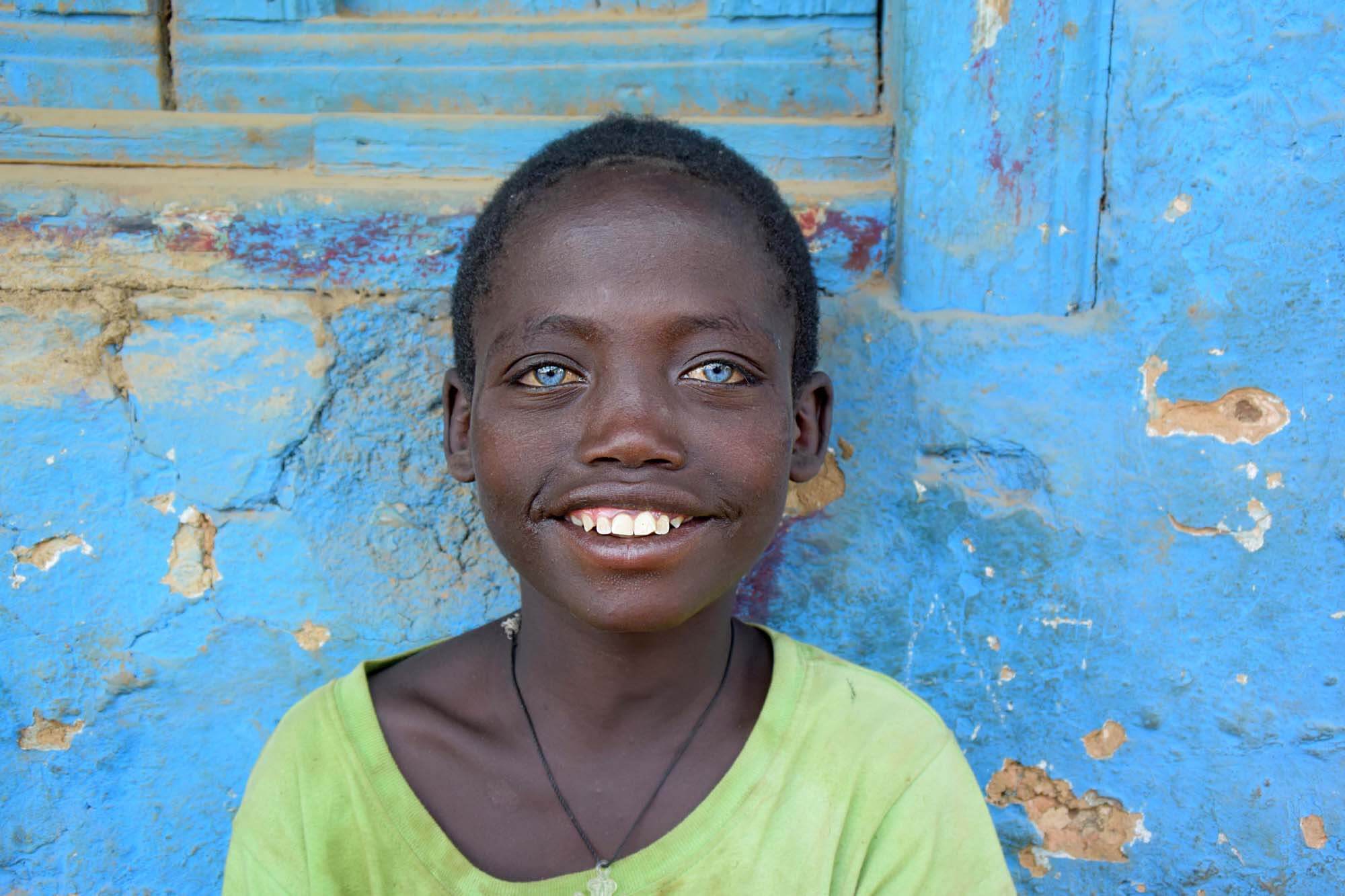 • Ambushe egy ritka kék szemmel született kenyai fiú